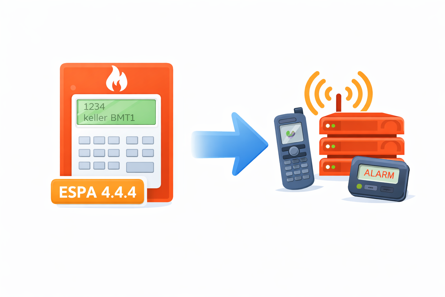 Import-Softwaremodul ESPA (BMA) zur Weitergabe der Meldungen aus dem Brandmeldesystem über das ESPA-Protokoll an das iNET-Rufanlagensystem. Anbindung weiterer Kommunikationssysteme und Alarmserver. Alarmmeldungen können z. B. über DECT oder Pager an das Personal weitergeleitet werden.