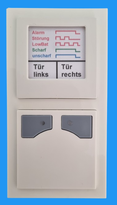 Technische Merkmale: 2 programmierbare Tasten mit LED-Statusanzeige Kopplung mit FSK-Funksensoren wie Türkontakte, Bewegungsmelder, Trittmatten u.v.m. LED-Anzeige: Blinkend bei Aktivierung, dauerhaft grün bei Bereitschaft