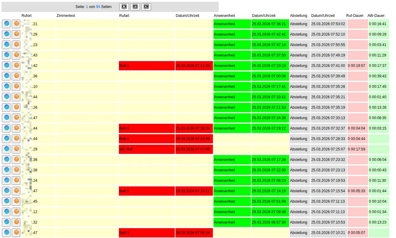 Es können in einer Zeile auch mehrere Rufarten gleichzeitig stehen, z.B. “Bett 1 - WC-Ruf” - das bedeutet es standen diese beiden Rufe gleichzeitig an.